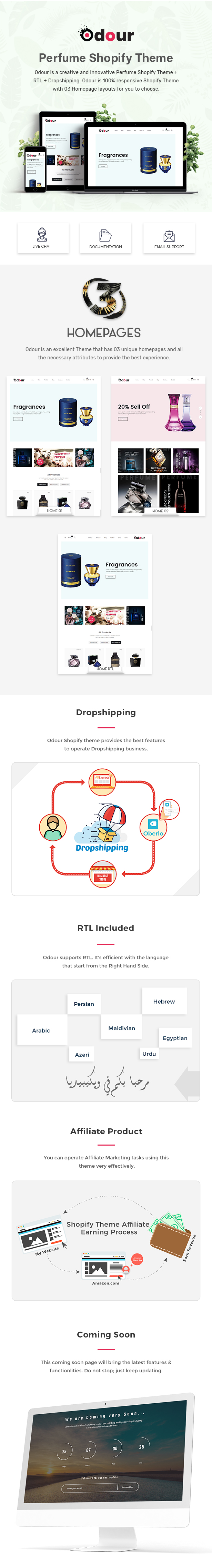 Odour – Perfume Store Shopify Theme is a stunning website demo that you can use to build all kind of eCommerce websites. To note that, eCommerce is the most growing kind of website today, and to compete in this tough race a quality website is mandatory.This Theme is a creative as well as modern Shopify theme. If you want to create a new website this eCommerce theme can be fulfilling your dreams within a moment. Using this new theme you may easily built a new site without any programming skills. This responsive theme specialize in selling perfume, fragrance, fashion, clothes, Men Fashion, Women Fashion, Kids Fashion, Accessories, Gadgets & Digital store, Watch, Shoes, Glass, Cosmetic, Instagram shop, and many more.Beautiful Header and Footer, 3 Home Version, Fully responsive, Sections, Shopify Builder, Drag & Drop, Mailchimp, Contact Form, Powerful Theme Option, Page option.